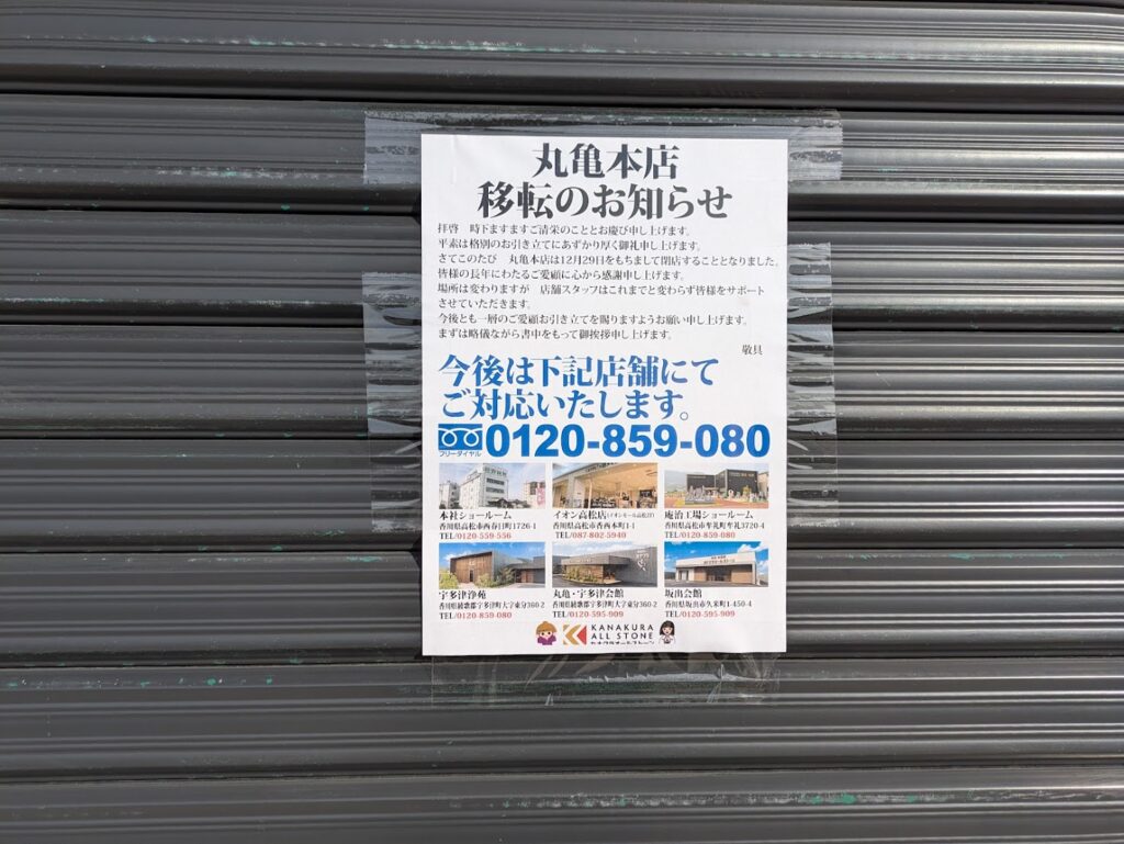 丸亀市飯野町のXYZ丸亀モール内「カナクラオールストーン丸亀本店」が移転に伴い2025年12月29日(月)で閉店したみたい